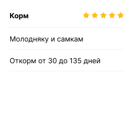 Рецептуры кормов разработаны на основе Европейских программ кормления животных.